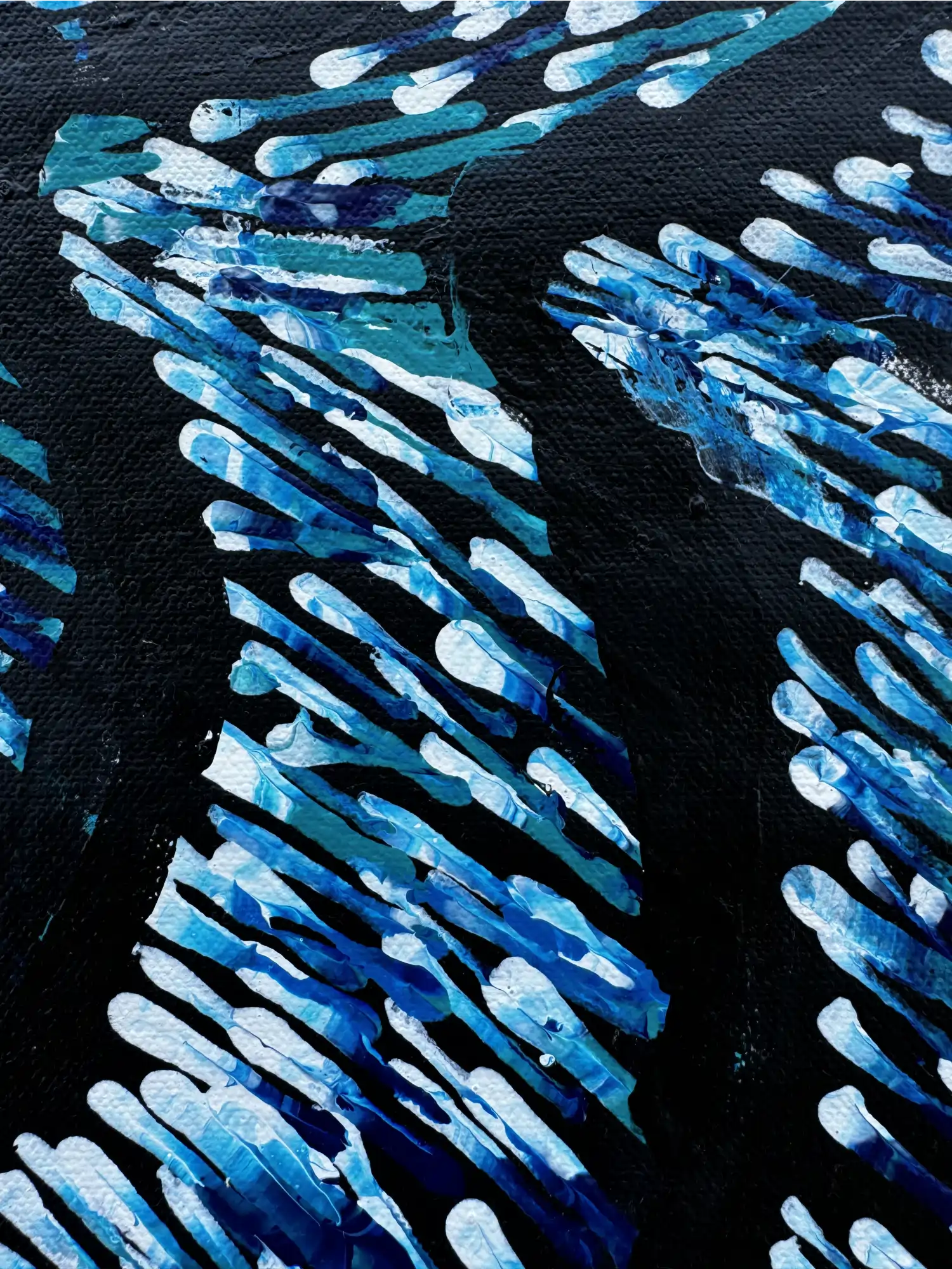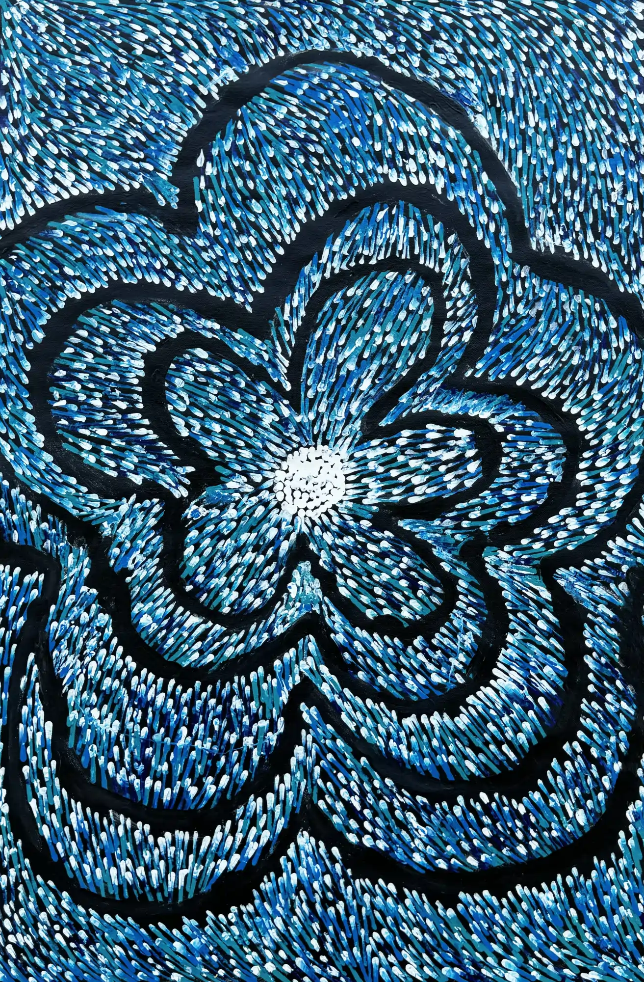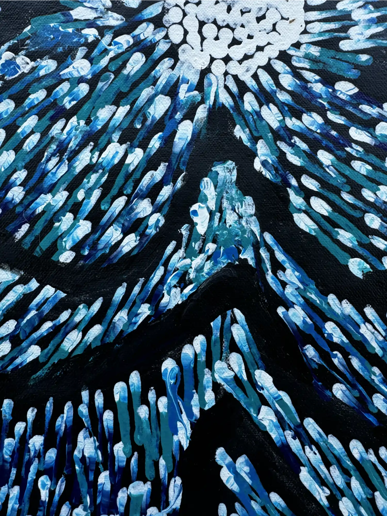 Initially, Lynette incorporated traditional symbols and realistic images of bush foods and tools. Recently, she has shifted towards a more abstract style, focusing on capturing the essence of her stories in a fresh, vibrant way.