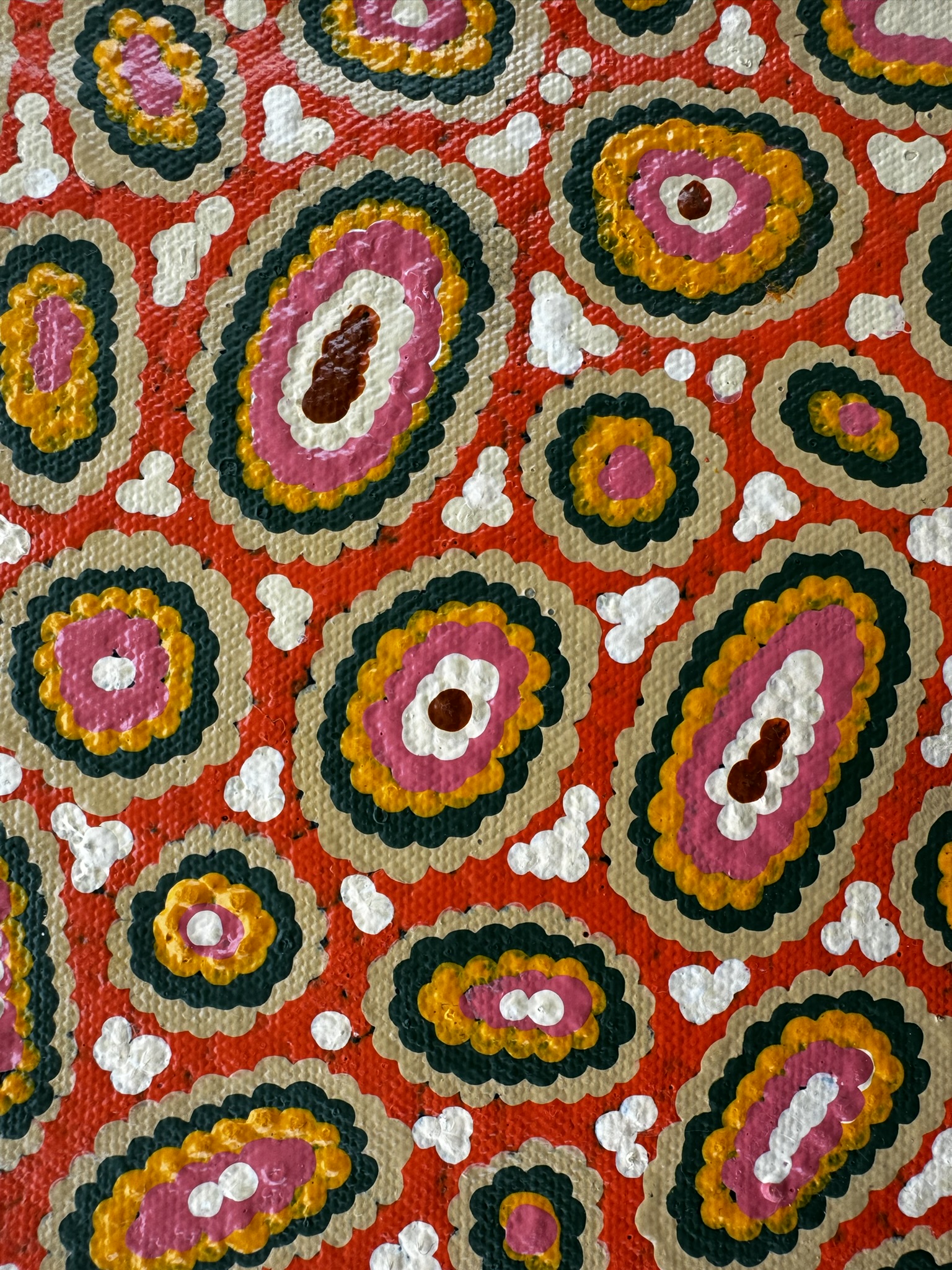 Karina is a highly respected Aboriginal artist from the Northern Territory, renowned for her vibrant paintings that reflect her deep cultural heritage and connection to her community. With a unique blend of tradition and contemporary expression, her artwork captures the essence of Aboriginal storytelling and the landscapes of her homeland.